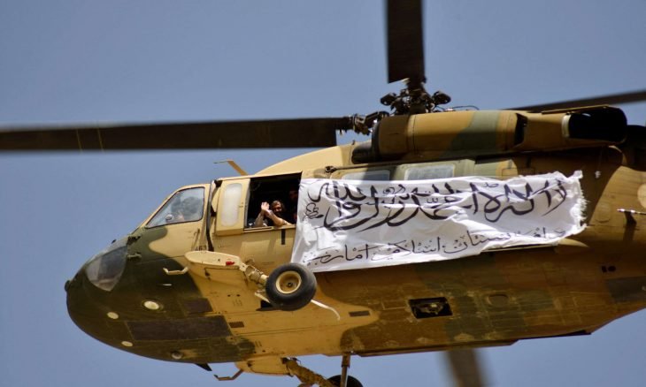 حلقت مروحية من طراز “بلاك هوك” فوق المعقل الروحي لحركة طالبان في جنوب أفغانستان، الأربعاء، فيما وقف مقاتلون على عربات الهامفي التي تم الاستيلاء عليها بينما كان المقاتلون يستعرضون المعدات العسكرية الأمريكية.