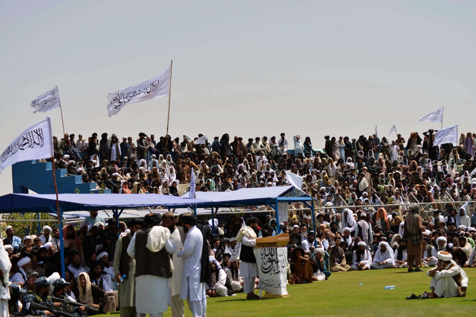 في ملعب قندهار للكريكيت، تجمع المئات للاستماع إلى خطب تمدح طالبان بعد هجومهم الناجح الشهر الماضي وتصب الازدراء على الولايات المتحدة.