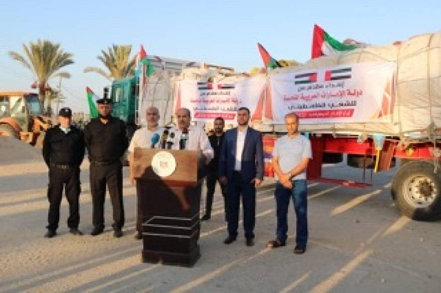 وأضاف أبوختلة في مؤتمر صحفي عقده في معبر رفح، حضره القيادي في حركة حماس غازي حمد وكيل وزارة التنمية الاجتماعية، وذلك خلال استقبال 39 شاحنة محملة بمعدات ومستلزمات لتجهيز المستشفى الاماراتي (مستشفى الشيخ محمد بن زايد) داخل مستشفى غزة الأوروبي، وسيارتي اطفاء مقدمة لجهاز الدفاع المدني، بدعم من دولة الامارات العربية المتحدة وبجهود من النائب محمد دحلان.