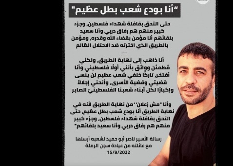 انتشرت وصية الشهيد الأسير القائد ناصر أبو حميد (50 عامًا) من مخيم الأمعري، بعد الاعلان عن استشهاده صباح اليوم.