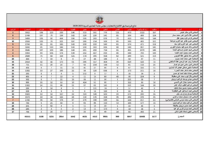وأعلنت لجنة الانتخابات المركزية في نقابة المحامين النظاميين الفلسطينيين عن انتهاء عملية فرز الأصوات، واستكمال الإجراءات الرسمية المعتمدة، والنتائج النهائية لانتخابات مجلس النقابة للدورة الحالية، وسط أجواء مهنية منظمة ومسؤولة.