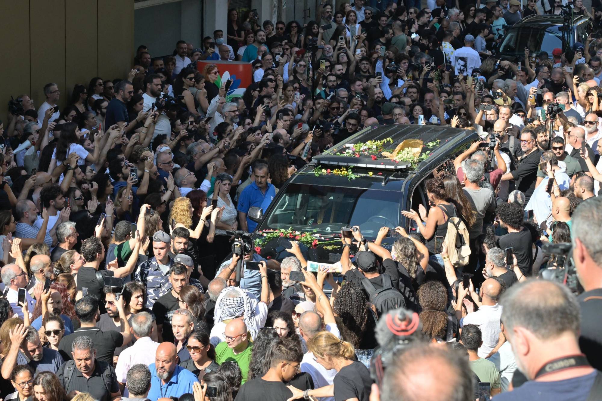 وراح الحاضرون يتبادلون التعازي فيما صدحت ألحان الراحل وصوته عبر سيارات كانت تمر في الشارع، ثم تحلقت مجموعة من المشاركين راحوا ينشدون أغنيات الراحل ومنها «لأول مرة ما مانكون سوا»، باكورة ألحانه لوالدته فيروز.